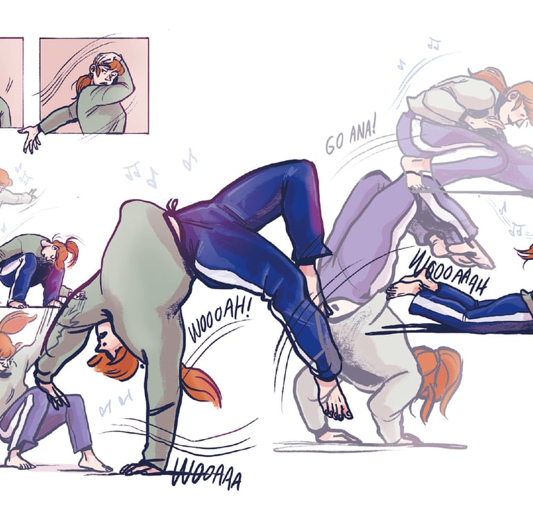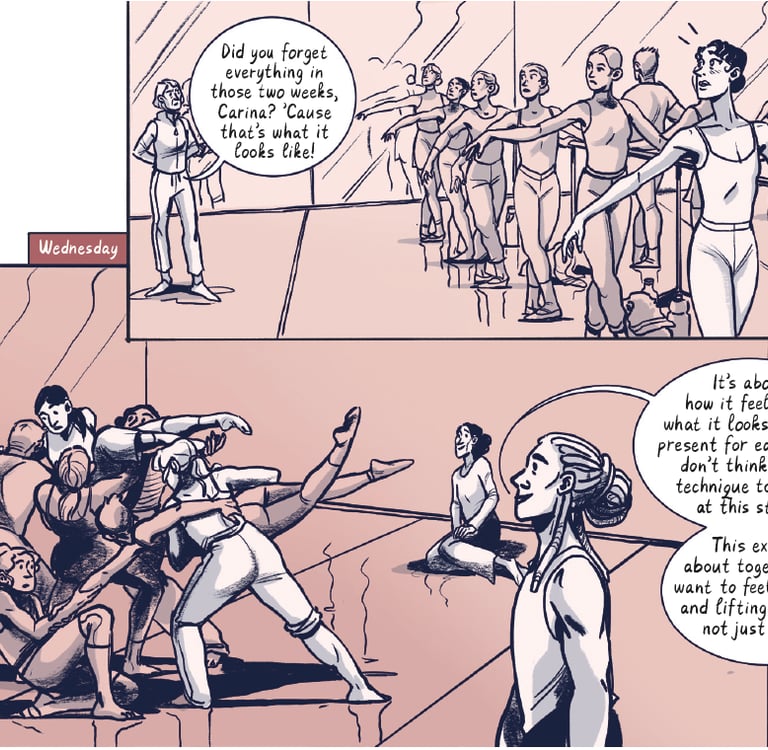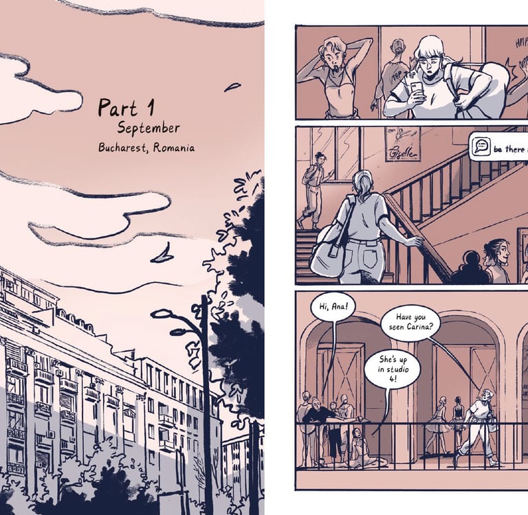 It’s a queer coming of age story about two high school students in a Romanian dance conservatory - one of them is losing herself in a relationship with a closeted ballerina while the other is in love with her contemporary dance teacher. Their friendship anchors them as they navigate their sexuality, first love and first heartbreaks. It’s a soft story I wrote when I was a baby queer myself and would’ve loved to read something like this as a confused teenager. She got a bunch of awards, listed below, and was my big entrance into making comics for a living!